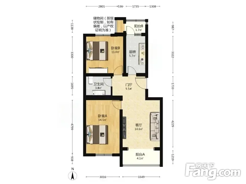 兴海家园日苑 2室1厅 83.89平