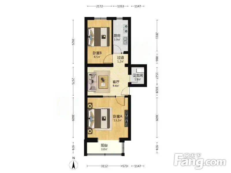 (客户0)金沟河2号院 2室1厅 54.6平