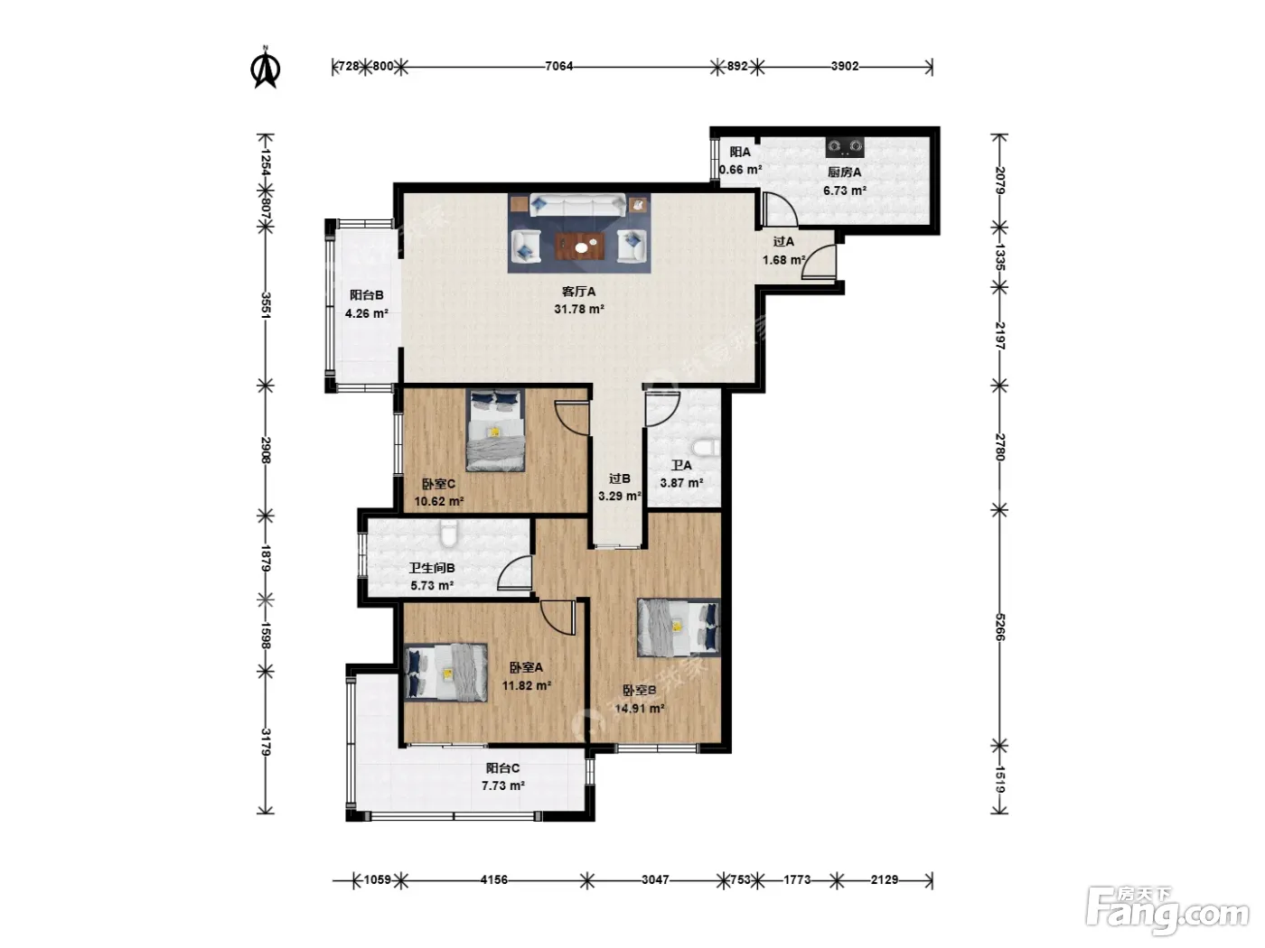 3室1厅2卫