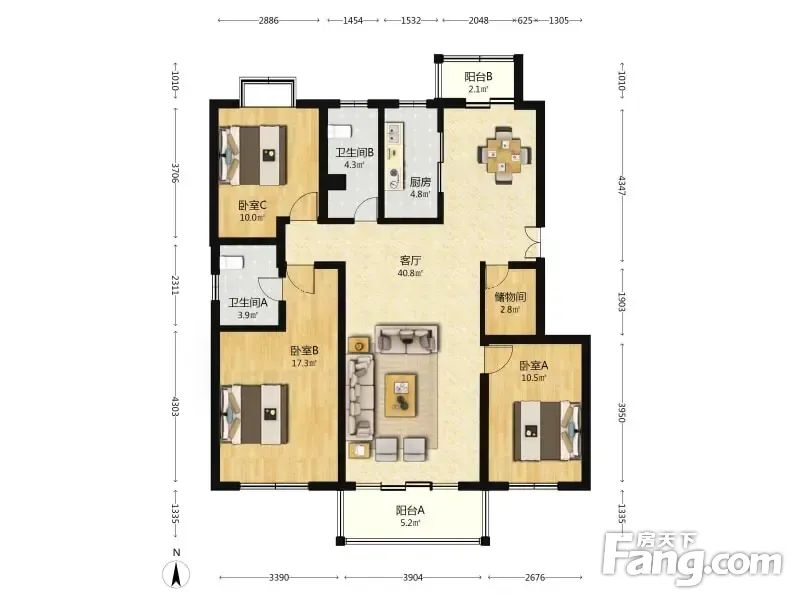 蓝郡国际花园 3室2厅 130.63平