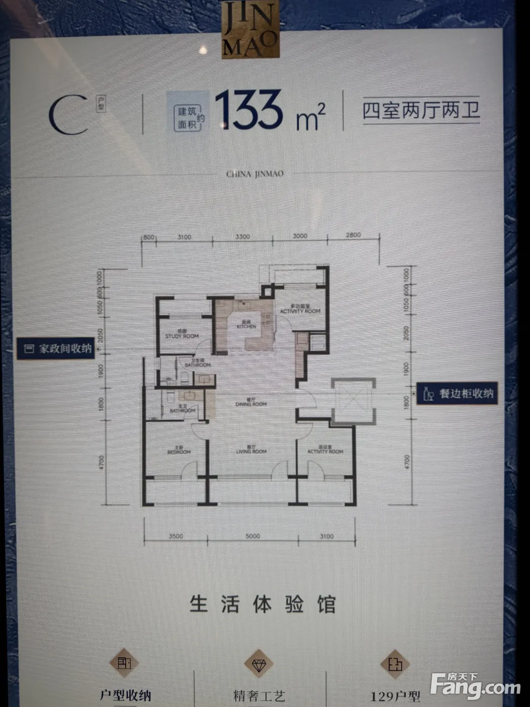 朝阳区新房 133平 四居 950万 小区配有会馆 金茂满曜