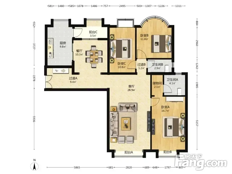 户型齐全,主打户型方正,明卫三居