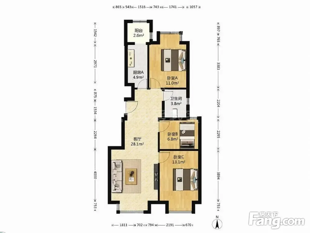 户型齐全,主打客厅朝南二居