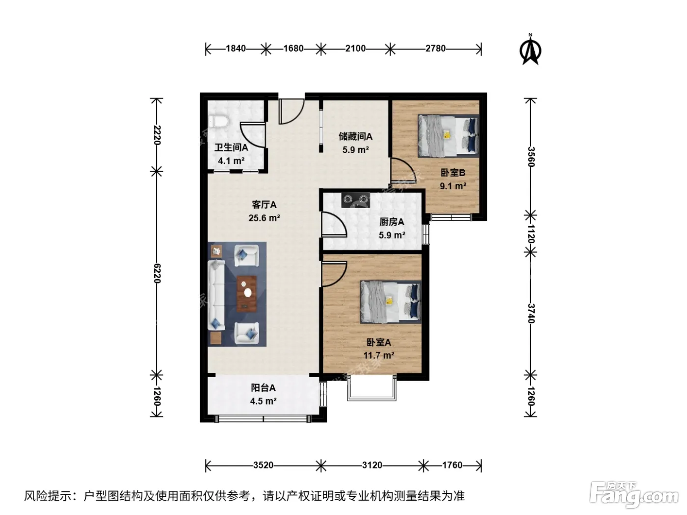 户型介绍:此房户型为2室1厅1卫,建筑面积为99.17平米,朝向为南。