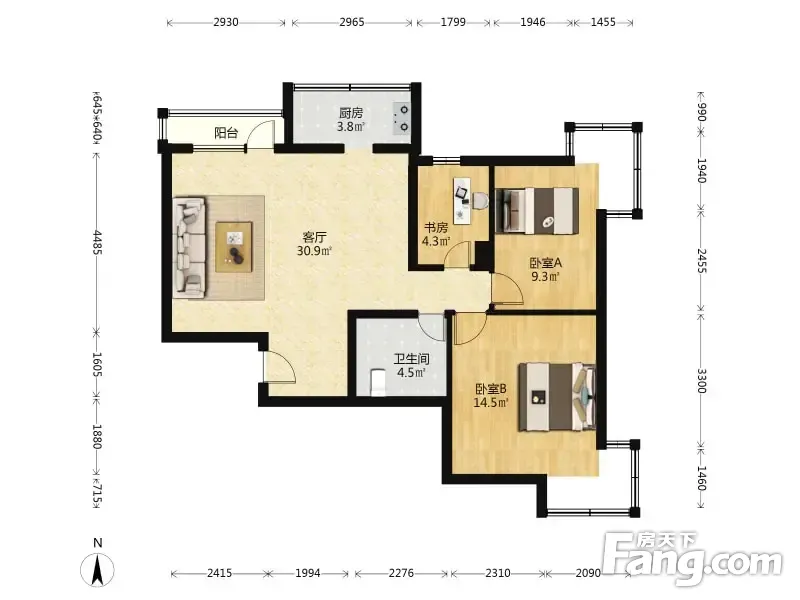 随园 3室1厅 90.13平