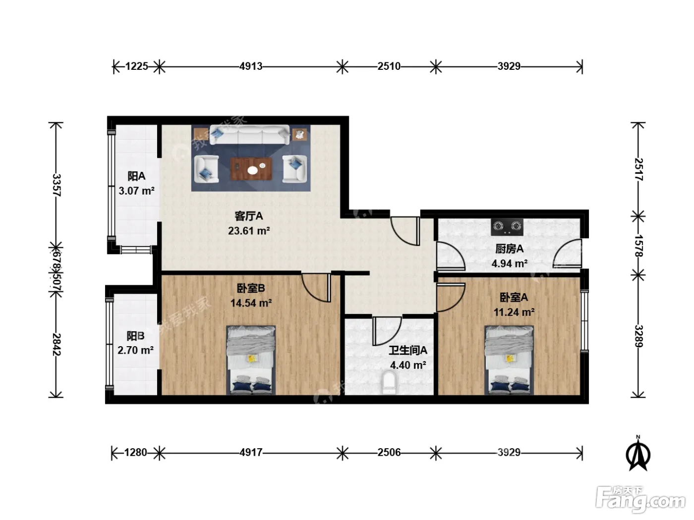 户型齐全,主打户型方正,明厨二居