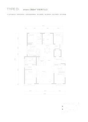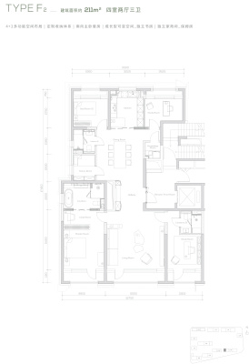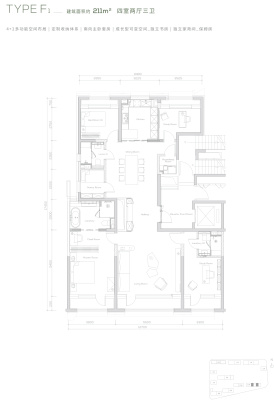 缦云ONE户型主要有211平-262平的的四居 、349平-349平的南北通透,户型方正,主卧套间,主卧带卫,主卧朝南,U型厨房的五居 。