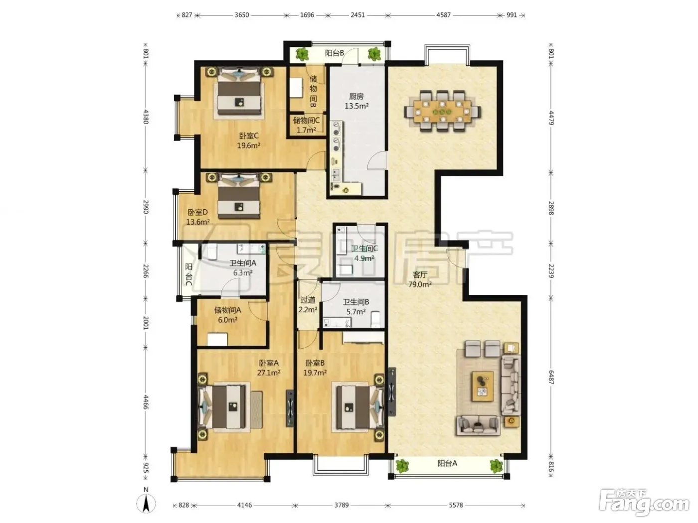 南北通透富力城D区4室2厅精装修