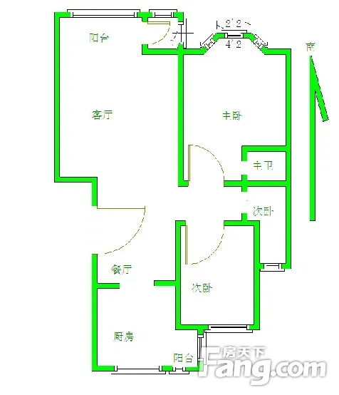 此房带电梯 二室二厅二卫,南北通透,户型方正。