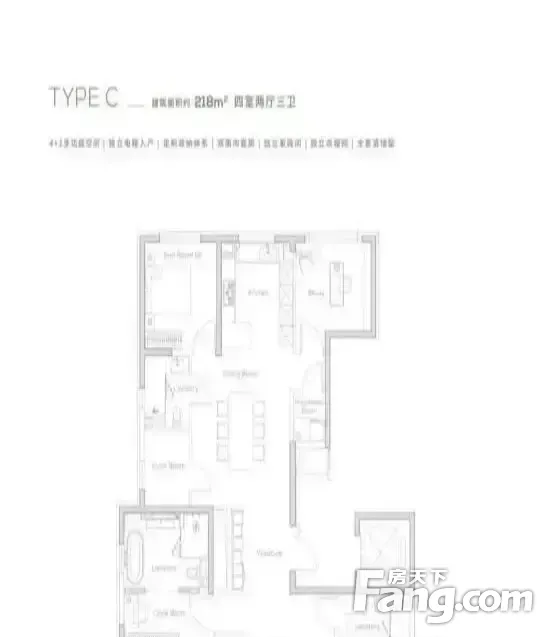 房屋拥有相对宽松的尺寸,布局通透,动静分离,设计豪华。