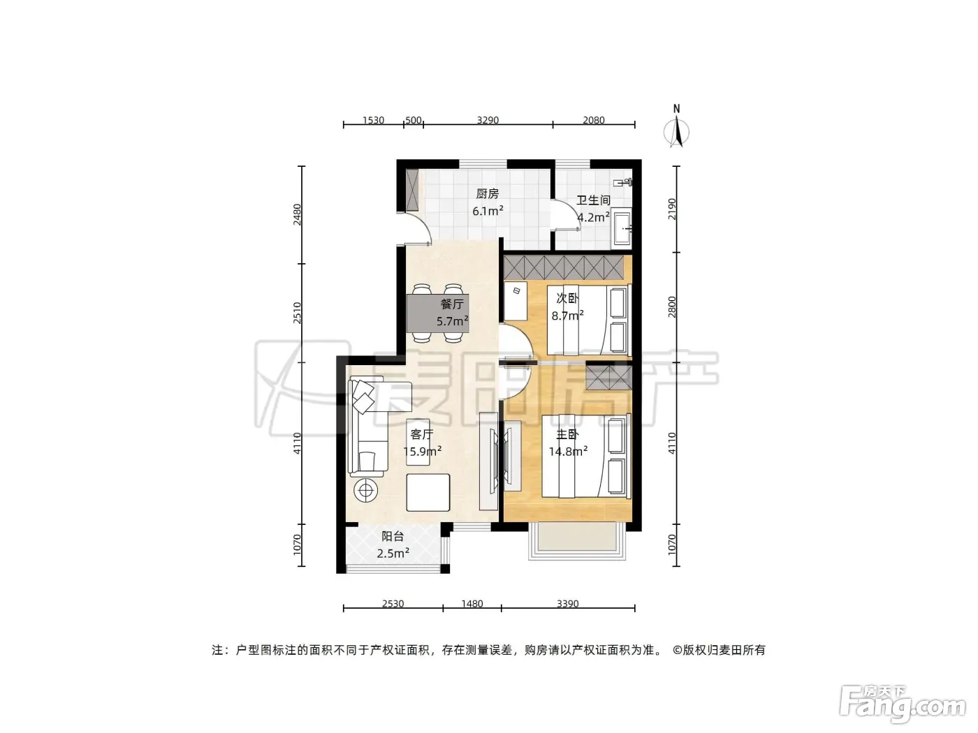 户型齐全,主打户型方正,明卫,明厨,客厅朝南,全明格局,主卧朝南二居