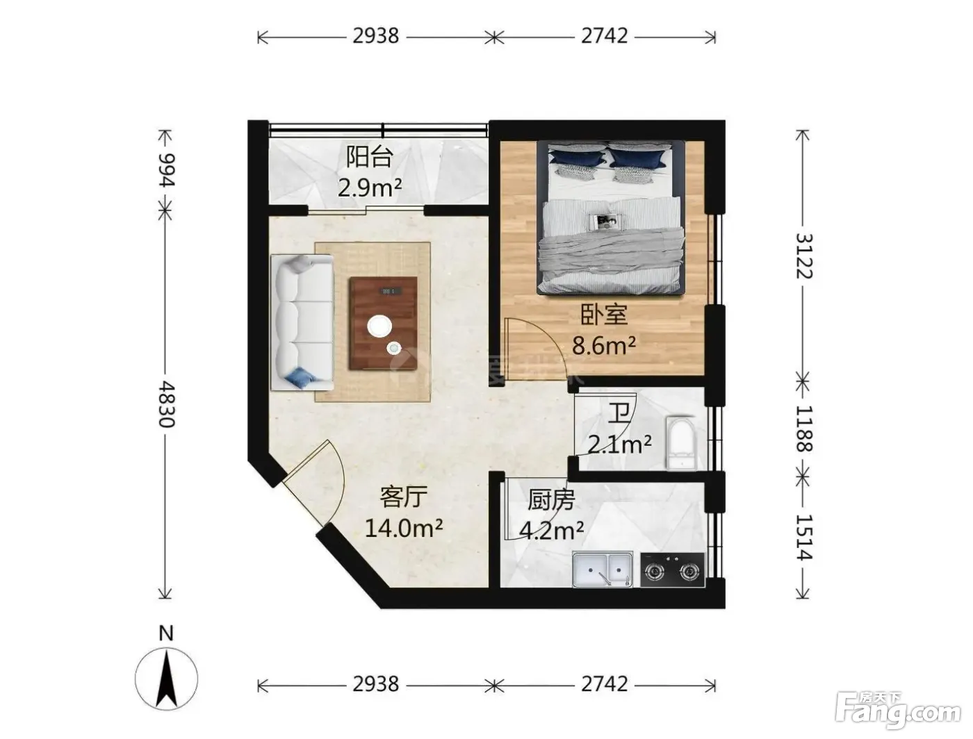 户型齐全,主打明厨,客厅朝南二居