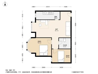 海悦公馆 2室1厅 76.01平