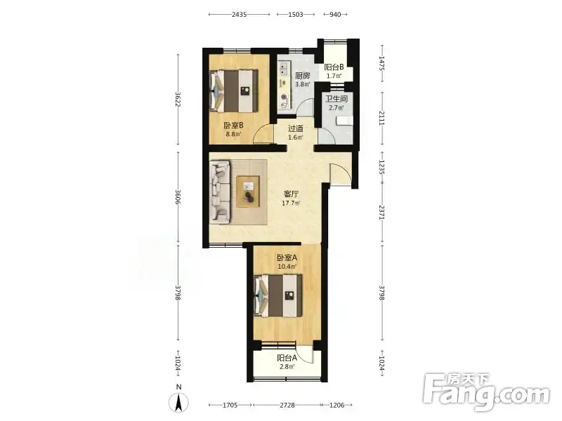 滨河西里南区 2室1厅 66.15平