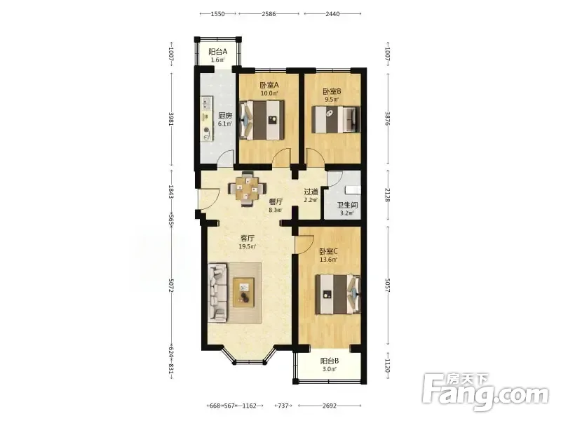 车站北里 3室1厅 101.48平