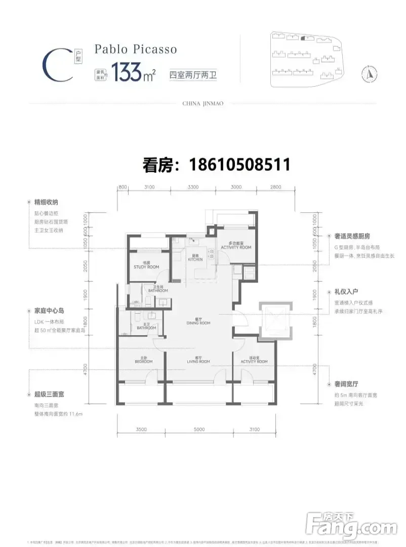 朝阳北路6号线金茂满曜,133平950萬,第四代科技住宅!