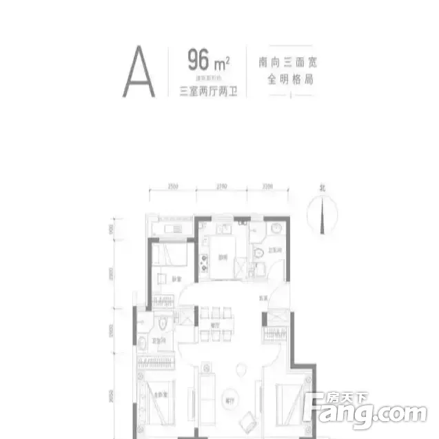 户型齐全,主打南北通透,客厅朝南三居