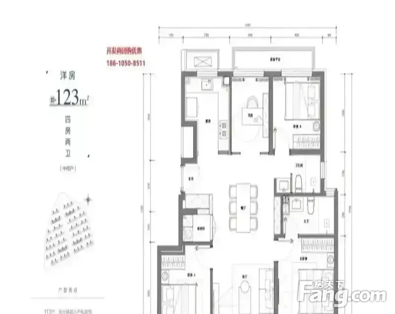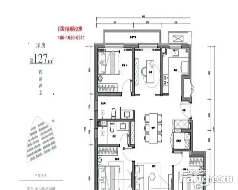 户型齐全,主打南北通透,全明格局,采光充足,客厅朝南,主卧套间,U型厨房四居