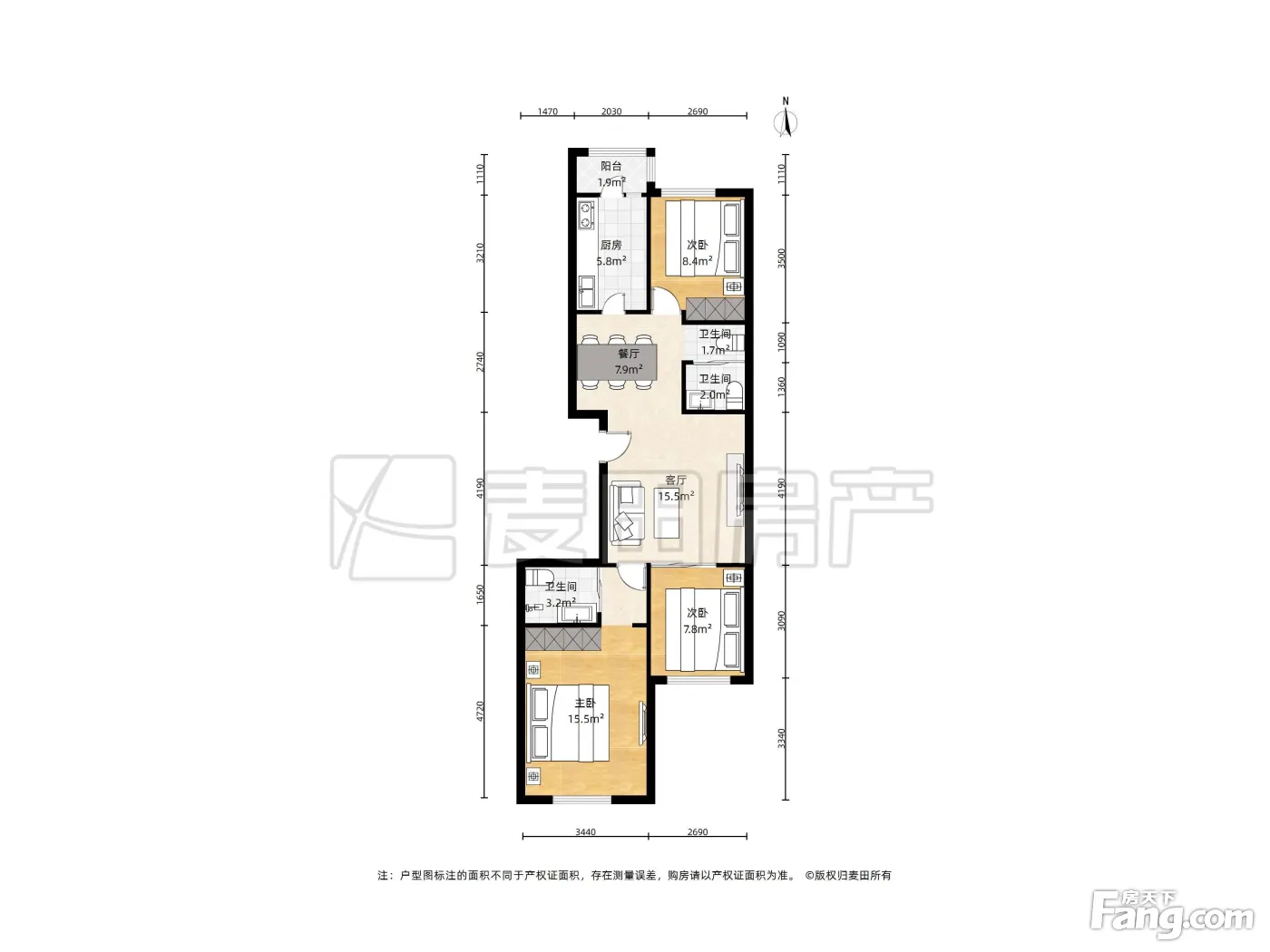 户型方正,客厅有40平米 两个卫生间都是明的 采光视野好