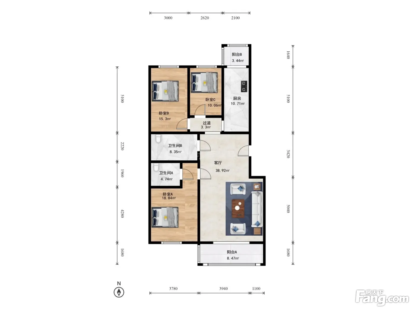 3室1厅2卫