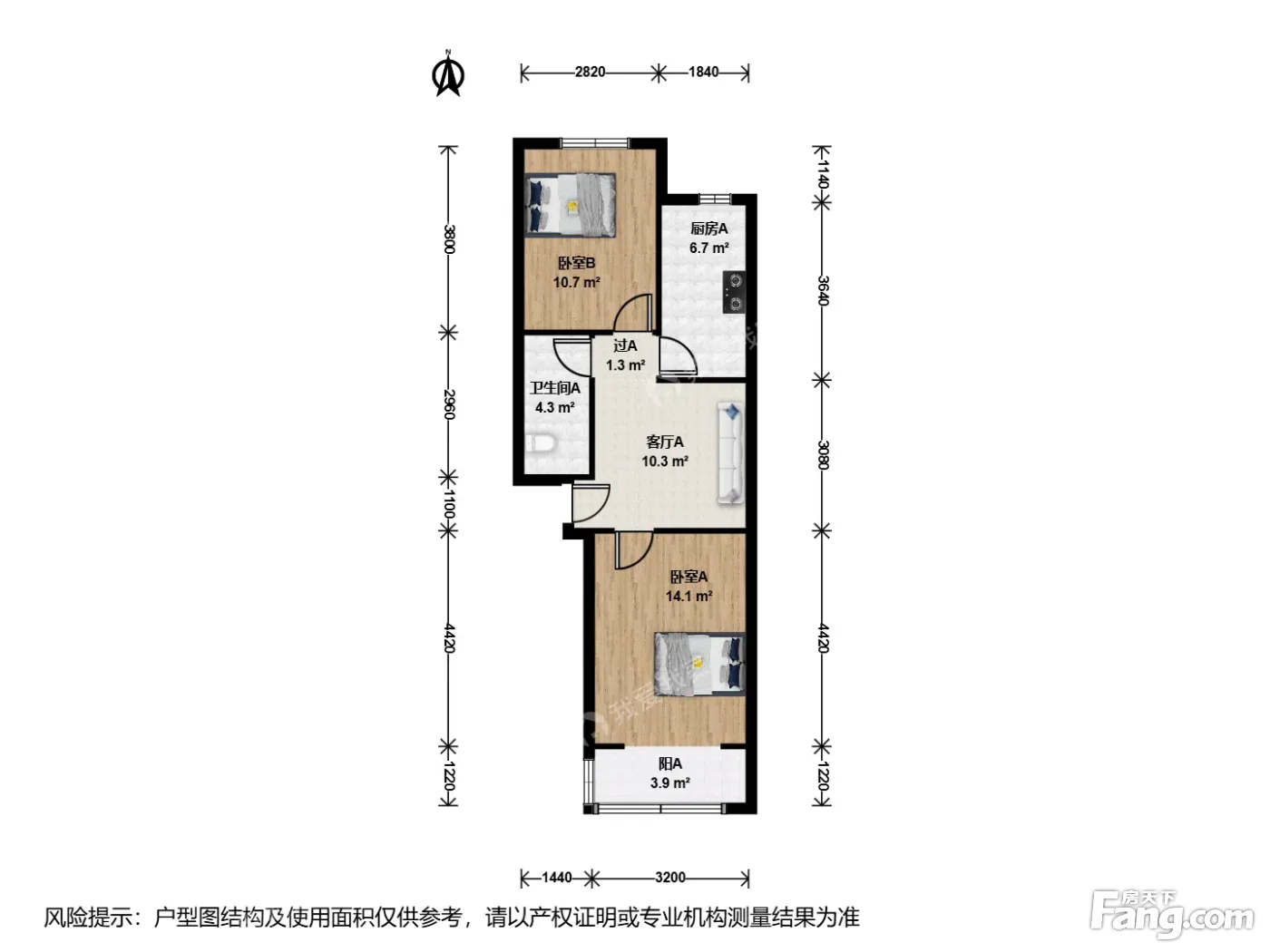 户型介绍:此房户型为2室1厅1卫,建筑面积为60.35平米,朝向为南北。