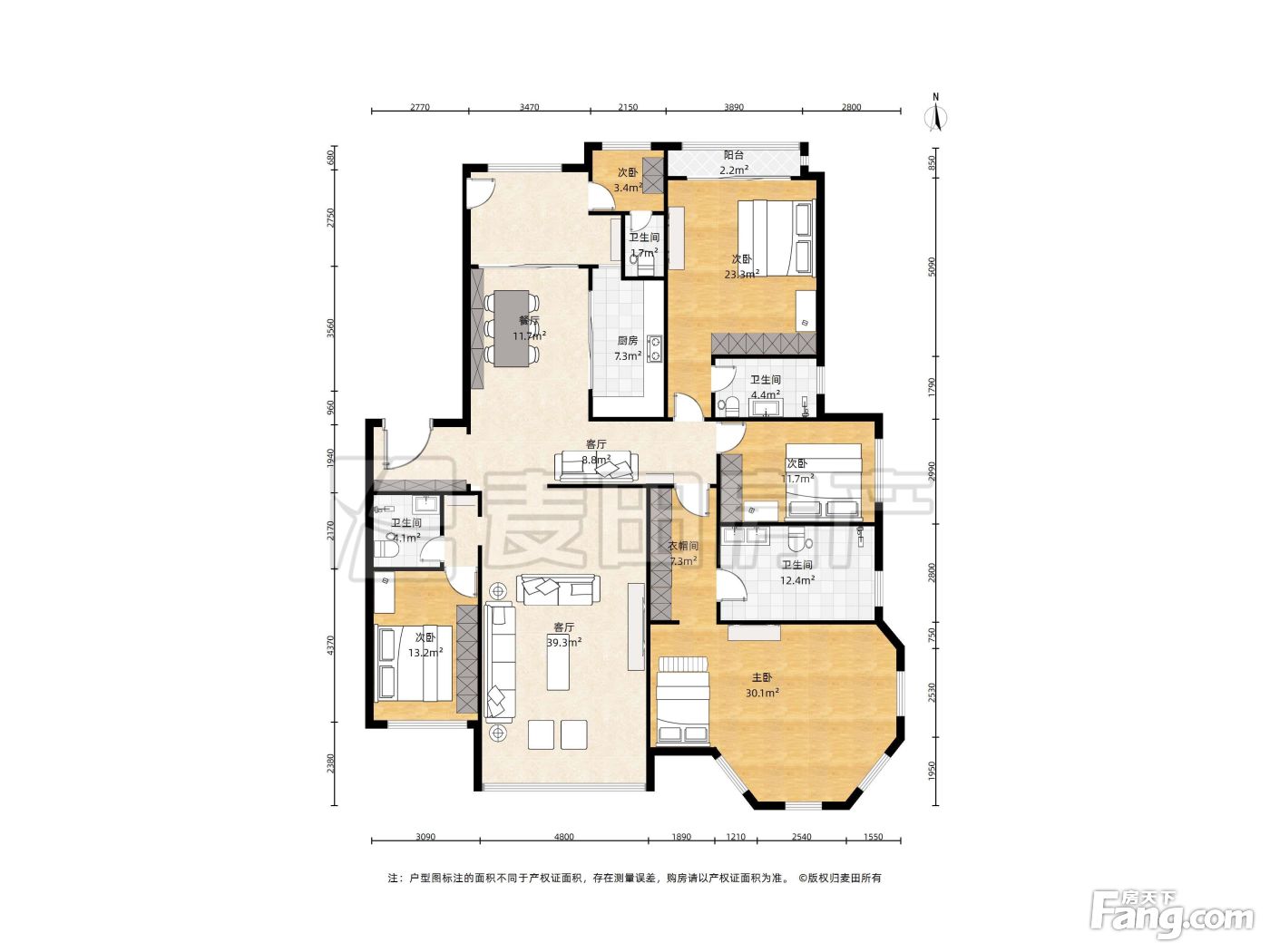 户型齐全,主打户型方正,独立衣帽间,明卫四居