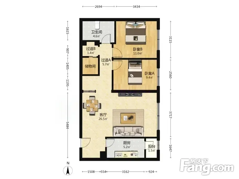 长安新城 2室1厅 98.09平