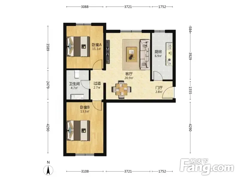 春风雅筑 2室1厅 87.67平 中间娄层