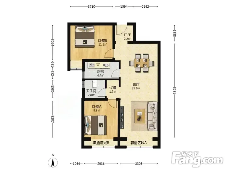 户型齐全,主打全明格局,动静分离二居