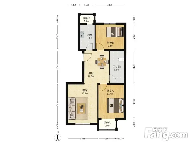 佟馨家园B区 2室1厅 88.45平