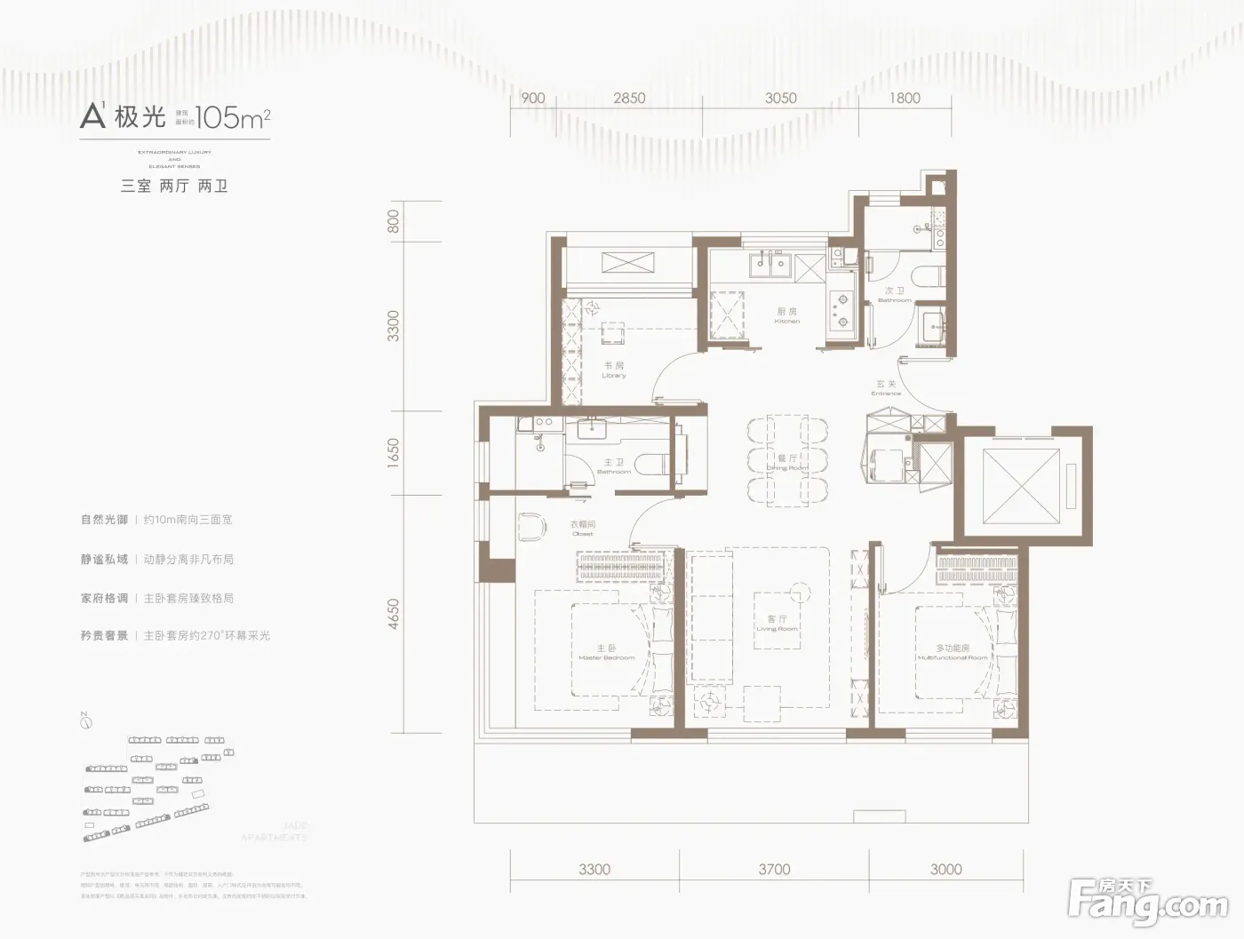房屋拥有相对宽松的尺寸,布局通透,动静分离,设计豪华