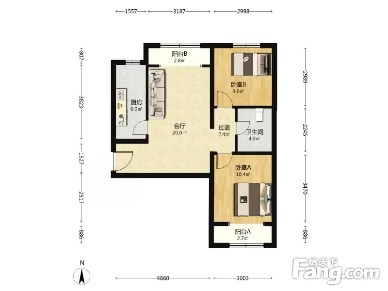 广安康璟家园 2室1厅 86.51平