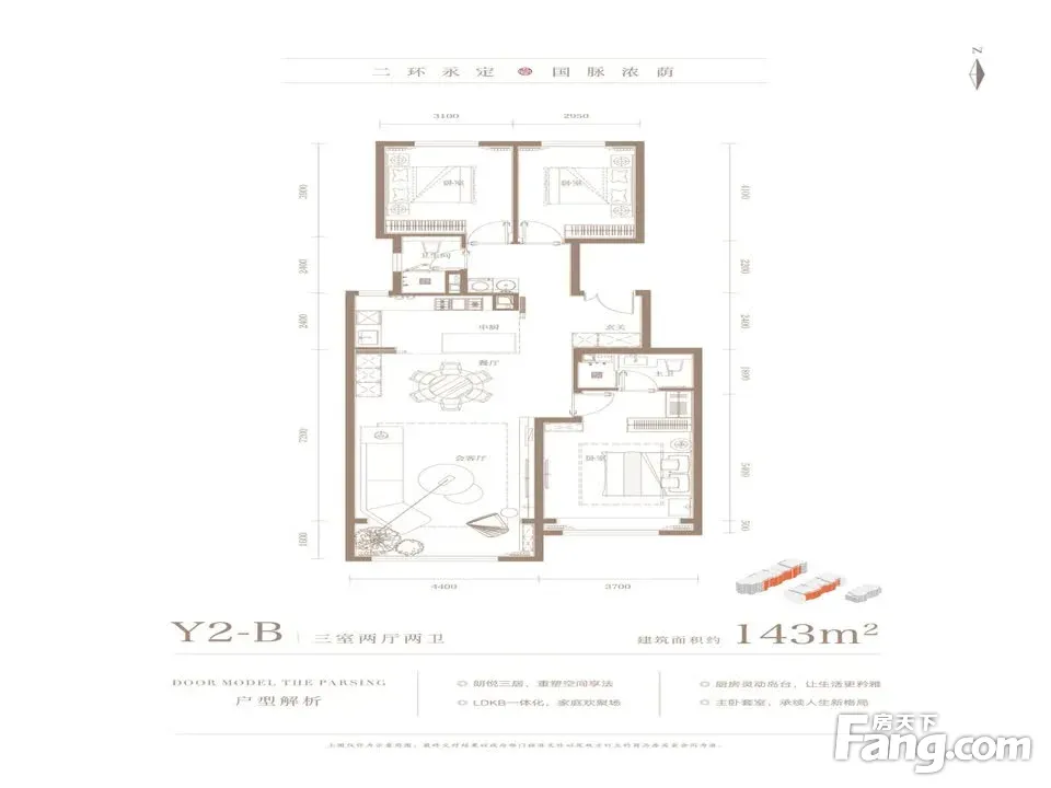 户型齐全,主打南北通透,采光充足,客厅朝南三居
