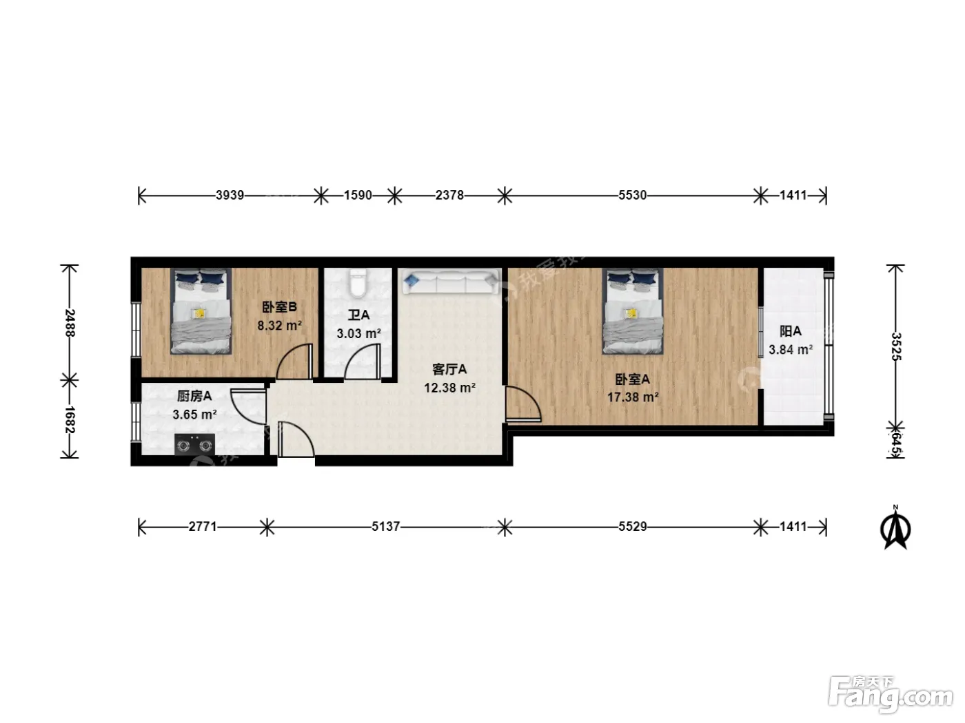 户型齐全,主打明厨,客厅朝南,双阳台二居