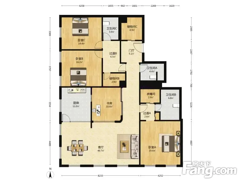 房屋拥有相对宽松的尺寸,布局通透,动静分离,设计豪华