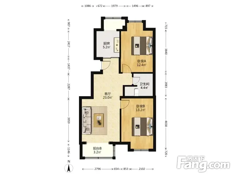 户型齐全,主打户型方正,明厨,主卧朝南二居