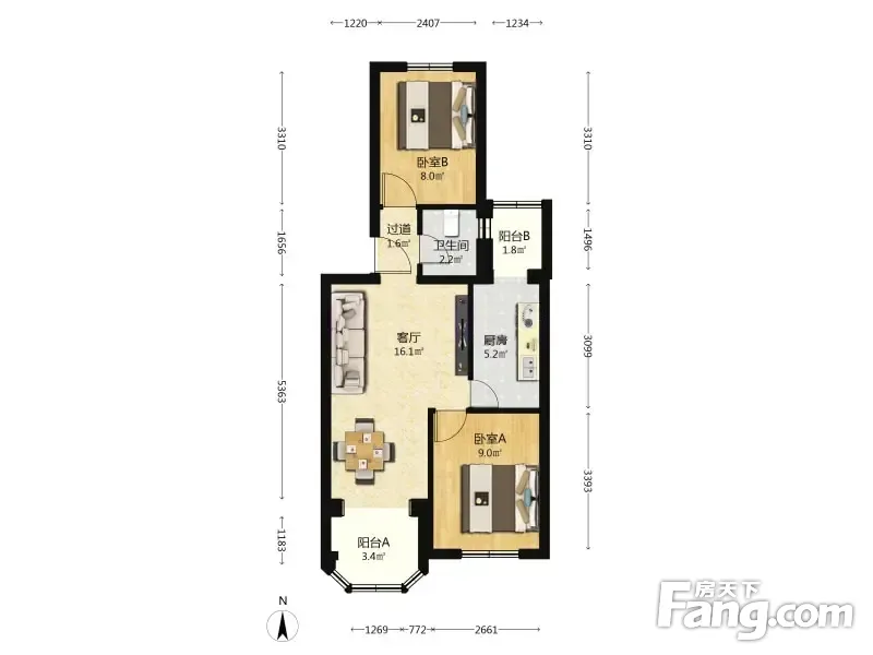 (买房零拥)金沟河5号院 二室 南北 全明格局 户型方正
