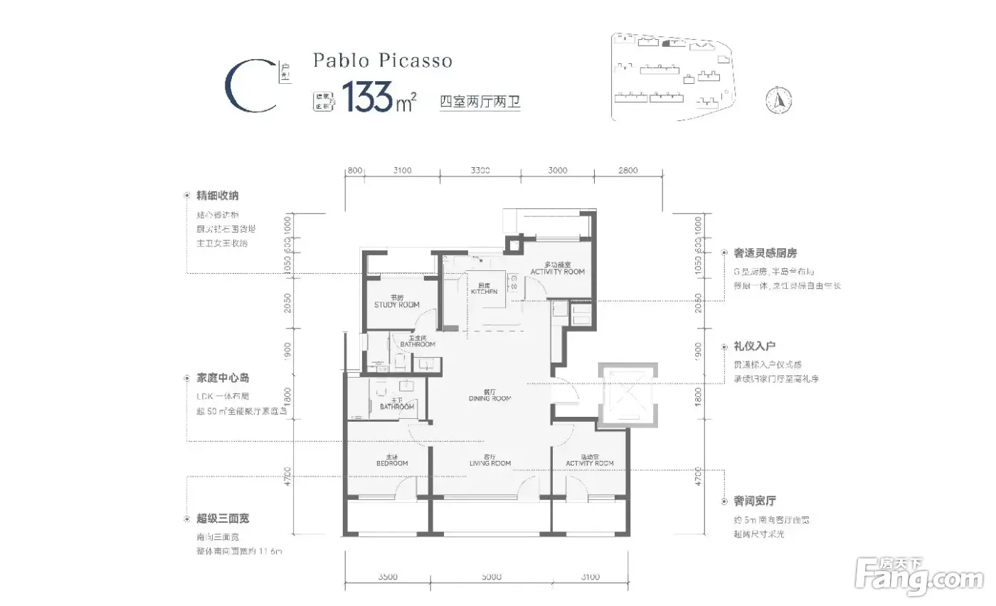 户型齐全,主打南北通透,全明格局,户型方正,动静分离,高附赠空间,采光充足四居