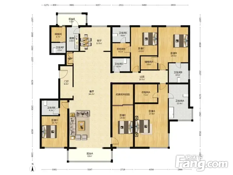 金融世家387.13平米精装南北5室2厅4卫位置户型采光好