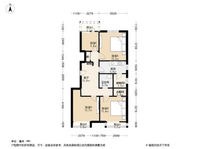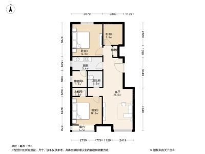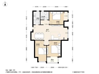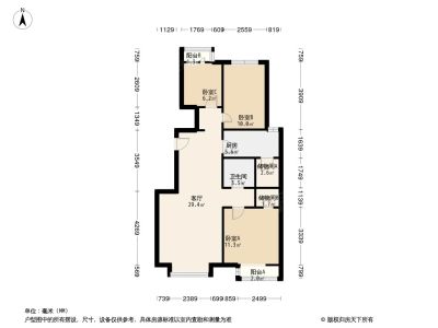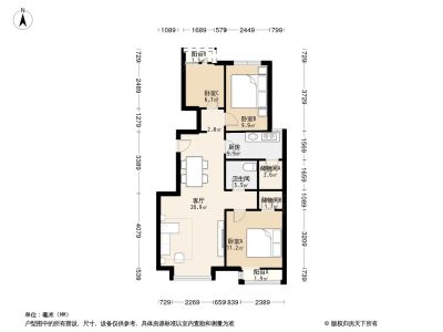 户型介绍:房子东南北三居室,户型方正,无浪费面积!