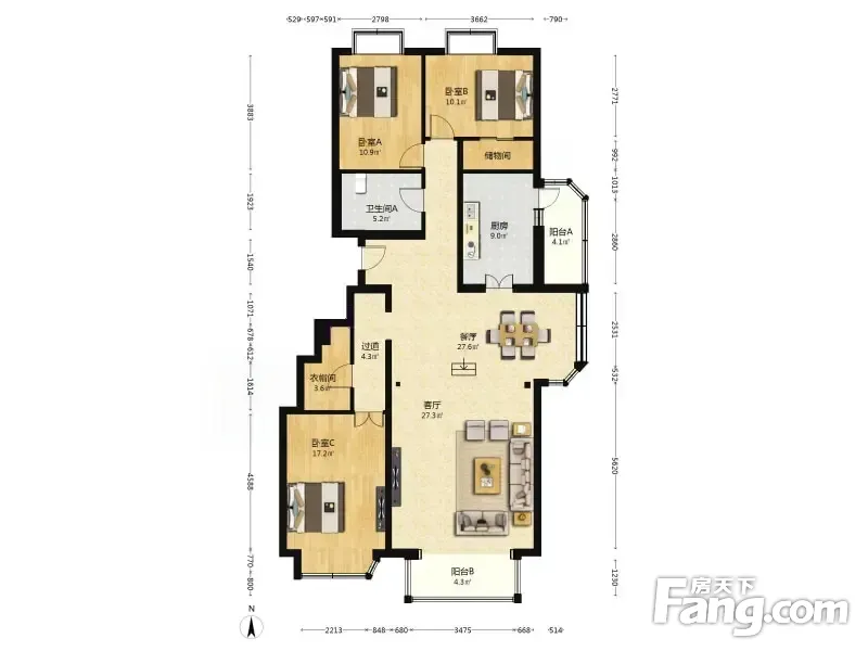 天兆家园 3室2厅 170.31平