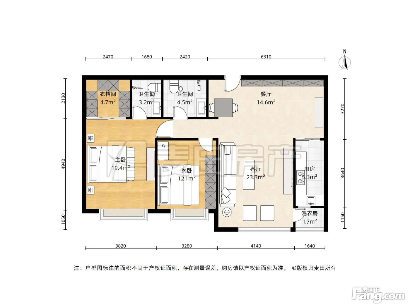 户型齐全,主打户型方正,明卫,独立衣帽间,双卧朝南,主卧朝南三居