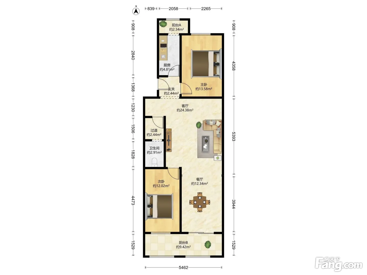 户型齐全,主打户型方正,明厨,客厅朝南,双阳台二居