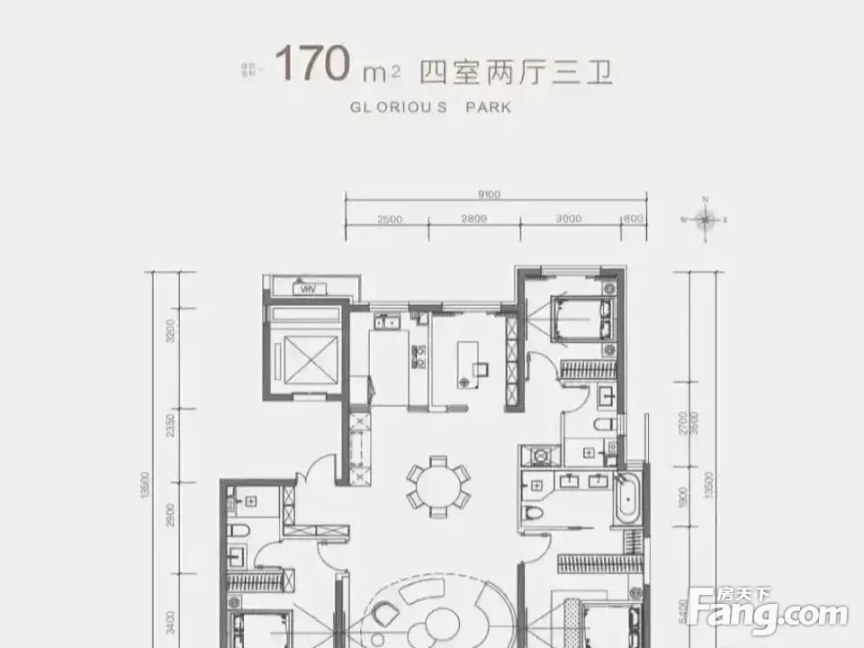 户型齐全,主打南北通透,全明格局,户型方正,动静分离四居