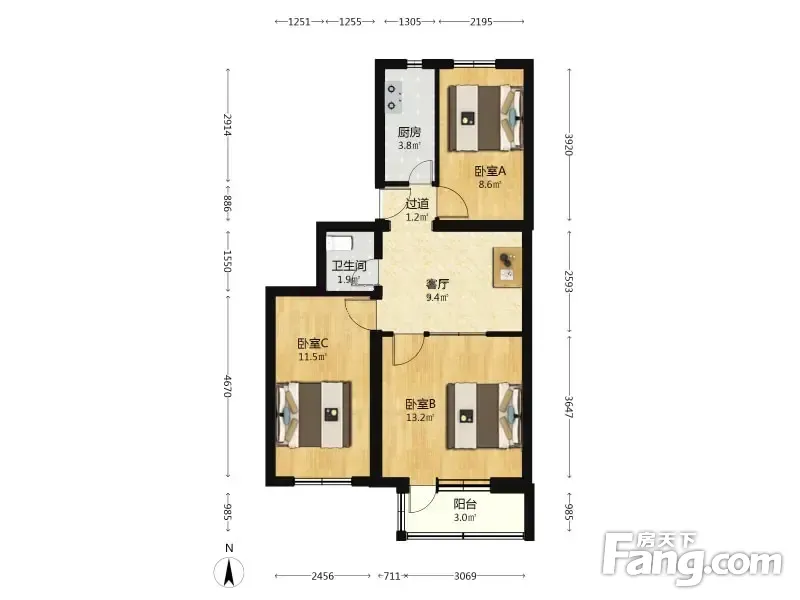 自营房源:南北通透三居室 格局好 户型好 周边配套齐全