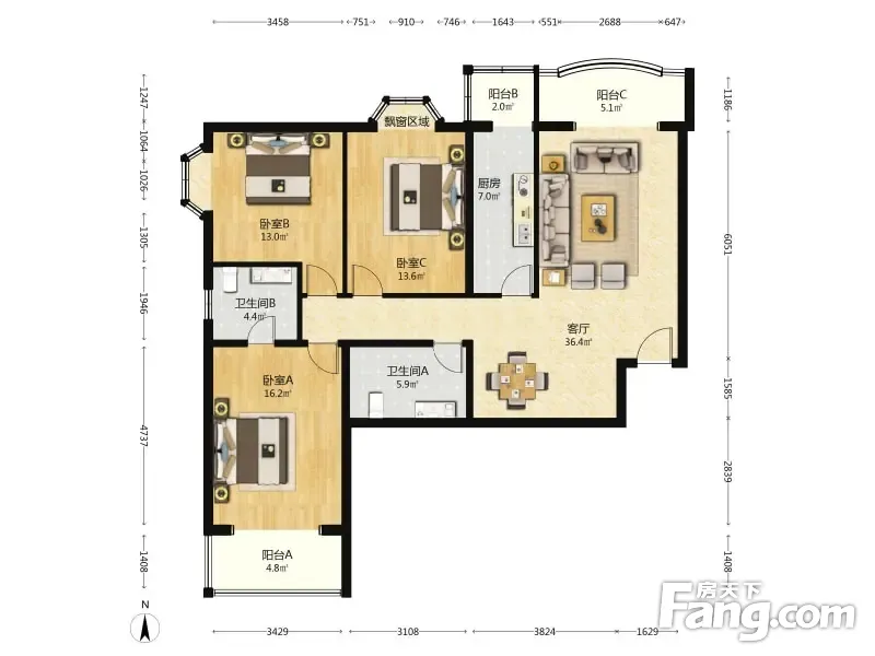 兴华园 3室1厅 135.15平 边户明卫大三居高层视野开阔