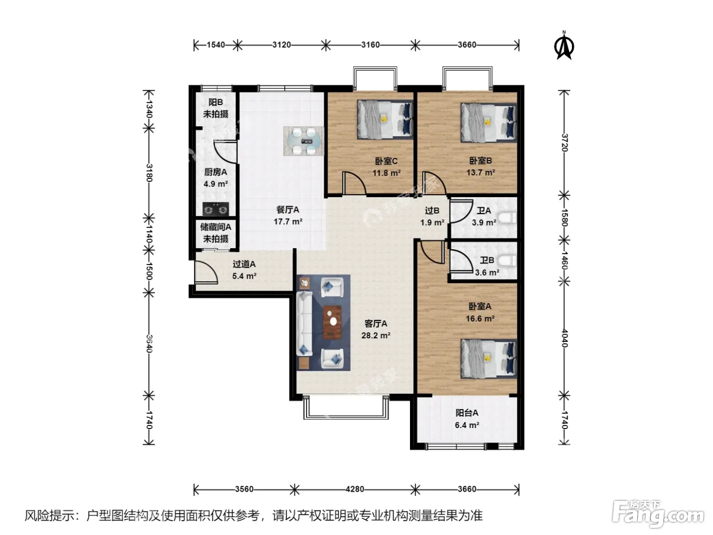 户型齐全,主打客厅朝南三居