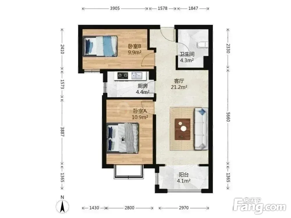 户型齐全,主打户型方正,明厨,双卧朝南二居