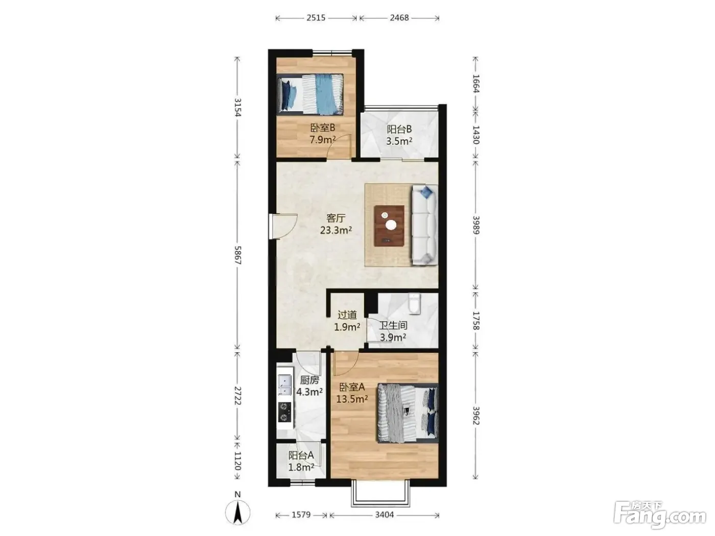 户型齐全,主打双阳台,双卧朝南,主卧朝南二居