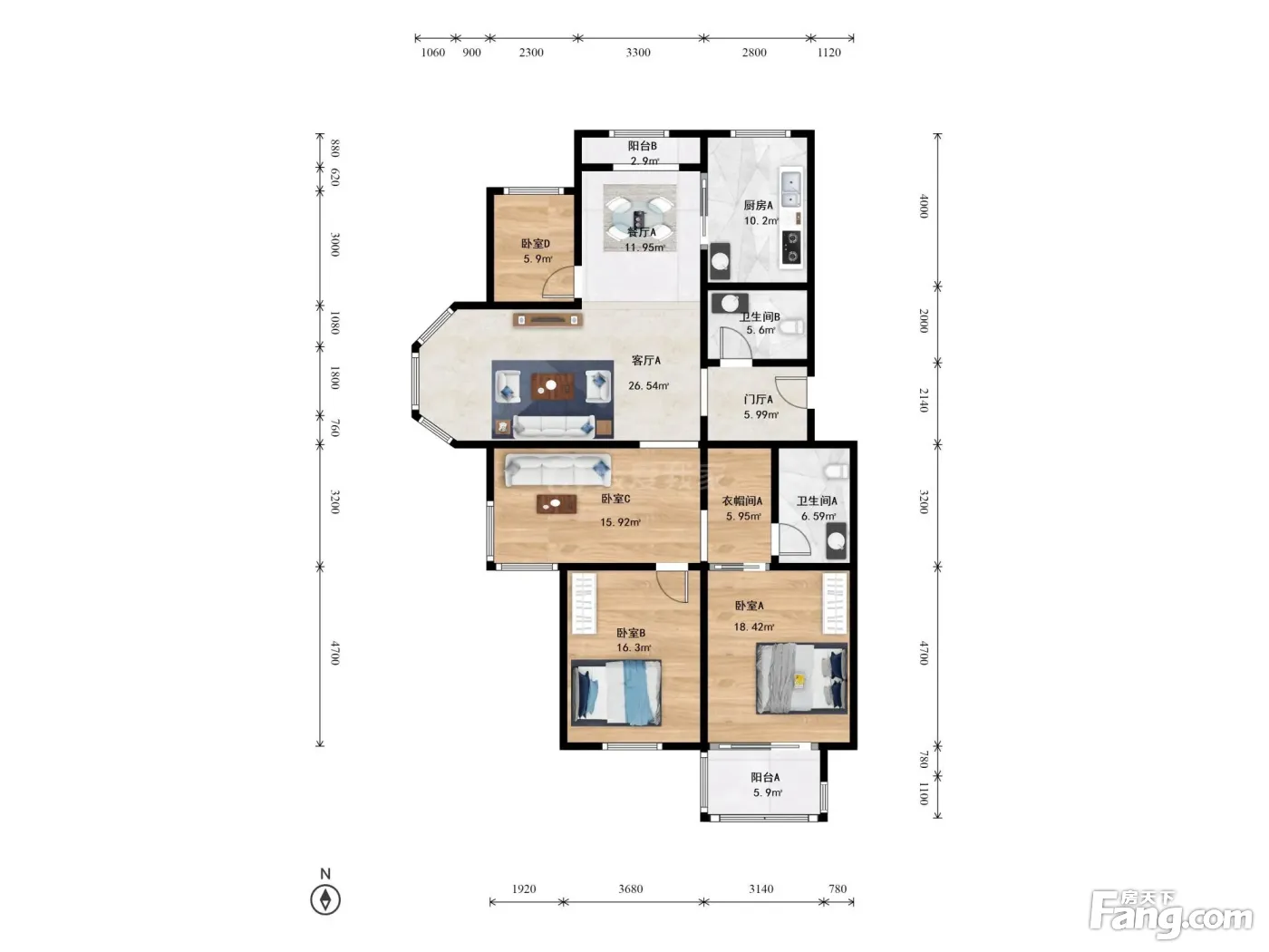 户型齐全,主打户型方正,明厨,明卫,双阳台三居